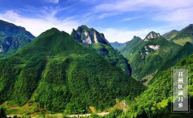 满月因西汉年间王莽追刘秀,刘秀逃至满月,刘秀的妃子在满月产子满月而得名。满月乡属于开州区北部、与城口县、四川的宣汉县边界相连,地形、地貌极其复杂,山势陡峭,险峻,幅员面积148平方公里,海拔420—2260米,距城区84公里。