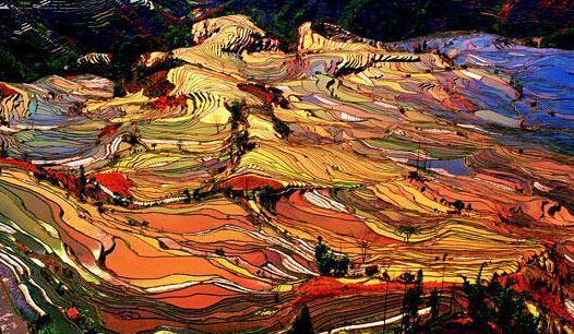 在酉阳黑水镇花田乡的一个名不经传的小山村——何家岩村,有一处海拔700-900米的丘陵山坡,面积5平方公里,梯田达上万亩,可与广西龙脊梯田、云南元阳梯田相媲美,但是现在知道的人并不多,是一块完全没有被开发的处女地。据村民说花田梯田有999级,形态各异,这个季节可以拍青色的稻秧~