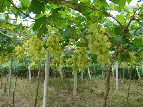 目前,志安已投产的果园100余亩,正在发展栽植有200多亩,苗圃有20多亩,志安和高级农技师合作,正在进行新育种培育的品种有五个,育种栽植成功的有一个(甜蜜香),目前盆栽葡萄,大棚葡萄安装滴灌设施,育种正在发展中。