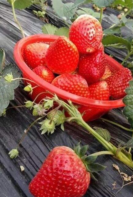 基地种植了40余亩地的草莓,有奶油草莓、巧克力草莓、白草莓、猕猴桃草莓等多个高端品种。按照绿色食品标准种植管理的草莓,采用有机肥和生物菌肥施肥,物理除虫法管理,不用除草剂,游客可以采摘直接入口食用。