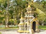 傣家水井的井罩建筑,技艺精湛,一座井罩就是一件艺术品。有的像华塔拔地而起,尖顶挂着一串串银铃,清风吹来,发出悦耳声响,塔外壁镶着各式各样的珠宝、明镜,在阳光照射下闪闪发光。有的东西两面是两头泥塑的白象,北面雕刻着交尾双龙,凤凰展翅,金鹿戏水。