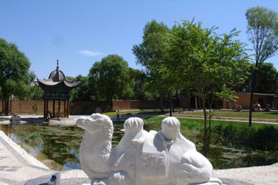 是撒拉族之乡传说中的一处圣迹。因一峰神奇的白骆驼,载负着撒拉族沉重历史,自中亚撒马尔罕至此卧泉化为白石而得名。相传,在中亚撒马尔罕有一个小部落,为首的头人是兄弟俩,名叫尕勒莽和阿合莽,在群众中威望很高,因受到当地统治者的忌恨和-,于是他们率领同族的18人,牵了一峰白骆驼,驮着故乡的水土和一部《古兰经》离开撒马尔罕向东寻找新的乐土,路上他们经天山,过嘉峪关,绕河西走廊,渡黄河,来到循化境内。经夕昌沟,越孟达山上了乌土斯山。这时天色已黑,苍茫中走失了白骆驼。第二天,他们在街子东面的沙子坡下发现一眼清泉,走失的骆驼卧在水中,已化为白石。他们试量了当地的水土,与故乡的水土完全相同,于是便在这里定居下来。历经艰辛的骆驼安详地静卧在泉水之中,与他们日夜相伴,泉水澄澈清亮,汨汨流淌,四季不断,便将这个清泉起名为“骆驼泉”。80年代初,政府拨款重修骆驼泉围墙和大门,泉边用花岗石雕刻骆驼石像,种花草树木,建水榭碑亨。重修的骆驼泉,明澈如镜,涟漪荡漾,蓝天白云,倒映其中;精雕细琢的石骆驼,伫立泉傍,昂首挺胸,栩栩如生。离骆驼泉不足百步,便有撒拉族祖寺街子清真寺和始祖尕勒莽、阿合莽陵墓。两棵葳蕤苍翠的古榆,交相辉映,自然盖住陵墓的顶,别具风情,常有游客观光。骆驼泉与毗邻的街子清真大寺,尕勒莽、阿合莽陵墓,珍贵手抄本《古兰经》,近千年古杨和百年古柏相互映衬,构成了撒拉族沧桑历史的见证和研究撒拉族历史沿革的有利依据。每年在此举办民俗饮食节、手抄本《古兰经》展示研讨会、刺绣展览节。骆驼泉位于循化撒拉族自治县积石镇西4公里的街子村清真大寺附近。它虽是一泓不大的清泉,但却是撒拉族之乡的一处圣迹,也是传说中撒拉族的发祥地。