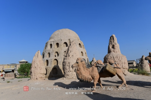 镇北堡影视城塔林位于明城与清城之间,进入景区右侧就是塔林,一大几小伫立在那,周边是向日葵,远方是贺兰山,右侧有座亭子,红灯高挂白缎飘飘,很有武侠片意境。造型雄伟、气势恢宏的塔林是影视拍摄的最佳场景,也是本影城一道靓丽的风景。