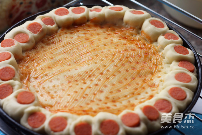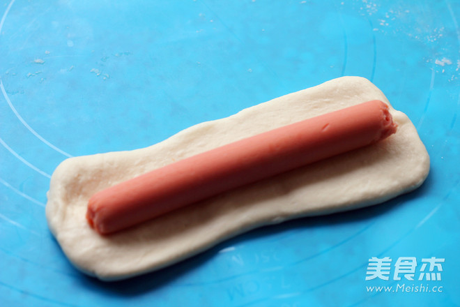 主料:面粉(125克) 水(80克) 酵母(1克) 黄油(10克) 培根(3片) 火腿肠(2根)
