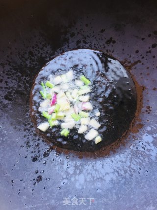 5.炒锅里放油,油热⬇️蒜头葱头炒香。