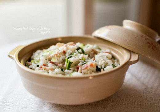 热腾腾的上海菜饭漾着培根的油脂及香气,且还带有一点高汤的甜美味道,青脆又多汁的青江菜更增添清爽滋味,简简单单的食材却有着多层次的好风味,这道懒人版上海菜饭作法非常不正统,但是味道挺正点的。