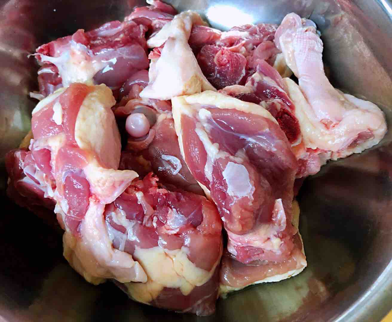 2.鸭腿剁成大小均匀的块状
