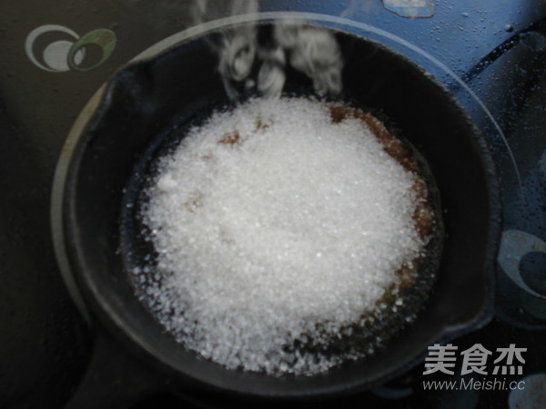 7.不粘锅放一点点油,放入细砂糖,开小火。