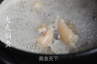 4.焯好的猪蹄用清水冼净放入锅中,取清水没过猪蹄,大火烧开焖煮30分钟。