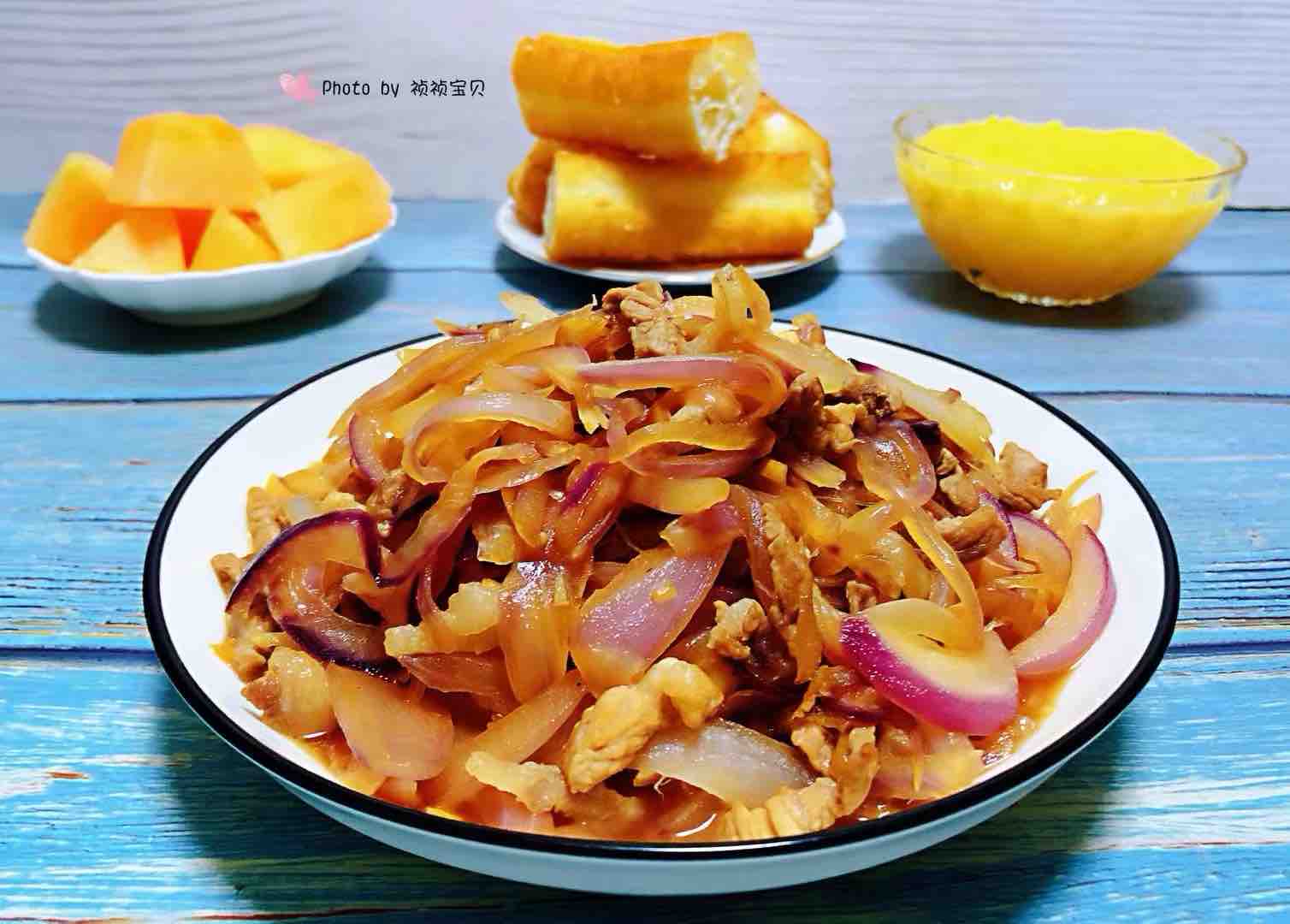 10.鲜美可口的洋葱炒肉装入盘中就大功告成了
