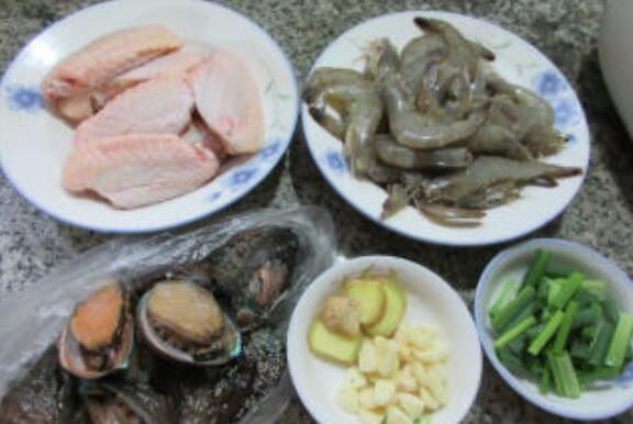 主料:中翅 305克 鲜虾 270克 鲍鱼 10个