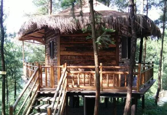 树屋为全竹木结构古朴的装修风格,窗外都是树林,抬头是璀璨的星空,可以在山间游玩,也可以品尝林中火锅。