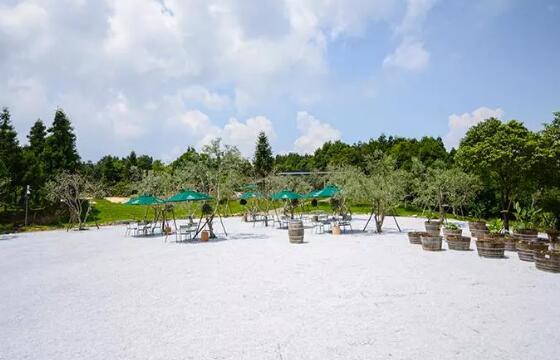 野兽花园农庄,位于海拔近900米的渝北区放牛坪,占地500亩,紧倚南天门森林公园,与放牛坪旅游景区连为一体。沿花园大门前行几十米便是橄榄树广场,大约七八百平方,由白色小碎石铺成的地面上,摆放着几桌古铜色的铁艺桌椅,这里是整个农庄的中心。橄榄树在重庆并不多见,在白色地面的映衬下,浪漫中透露着时尚。