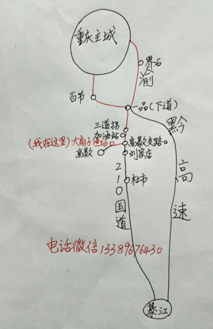 路线指引:导航“江津高歇中学”或“江津梓桐观”,一品下道往綦江方向,过李家湾收费站后再过两个加油站大约半分钟,当导航提示“进入岔路”时,可以看见右手(高歇支路口)有一个不锈钢候车亭,由支路进入行驶约2公里处,看见右手边有彩钢棚(不是活动板房,还要往前半分钟),彩钢棚上挂有塑料花,以及一个特大的扇子形鱼塘时就到了。
