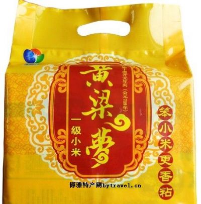 黄粱梦小米是河北省邯郸市邯郸县的特产。黄粱梦小米色泽金黄,颗粒饱满,质地较硬,特别是熬成粥后,黄而粘稠,口感润滑,有“代参汤”之美誉。黄粱梦小米为国家农产品地理标志保护产品。