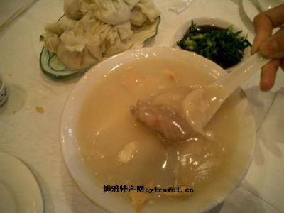 头脑从表面上看去,只是一碗不稠不稀的糊汤里泡着几块羊肉。因之也有人叫“头脑汤”。其实头脑的成分还是比较多的,有羊肉、羊髓、酒糟、煨面(炒过的面粉)、藕根、长山药,连同黄芪、良姜共计八宗,叫做八珍场。吃的时候,佐以腌韭,好象服药的引子。