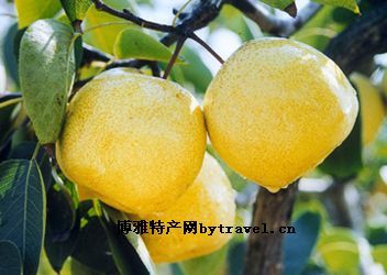 丰县白酥梨是江苏省徐州市丰县的特产。丰县白酥梨果皮呈淡金黄色,平滑而有腊质光泽;果肉洁白如玉,酥脆爽口,浓甜如蜜,风味纯正,更兼皮薄多汁、弹指即破、入口即酥、落地无渣的特点。